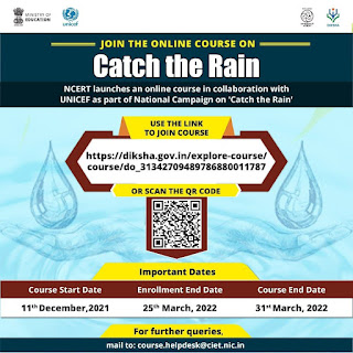 *🔷NCERT launches an online course developed by Ministry of Education with assistance of @UNICEF & the Centre for Environment Education (CEE) as part of the national campaign ‘Catch the Rain’ implemented by @MoJSDoWRRDGR , Government of India.*